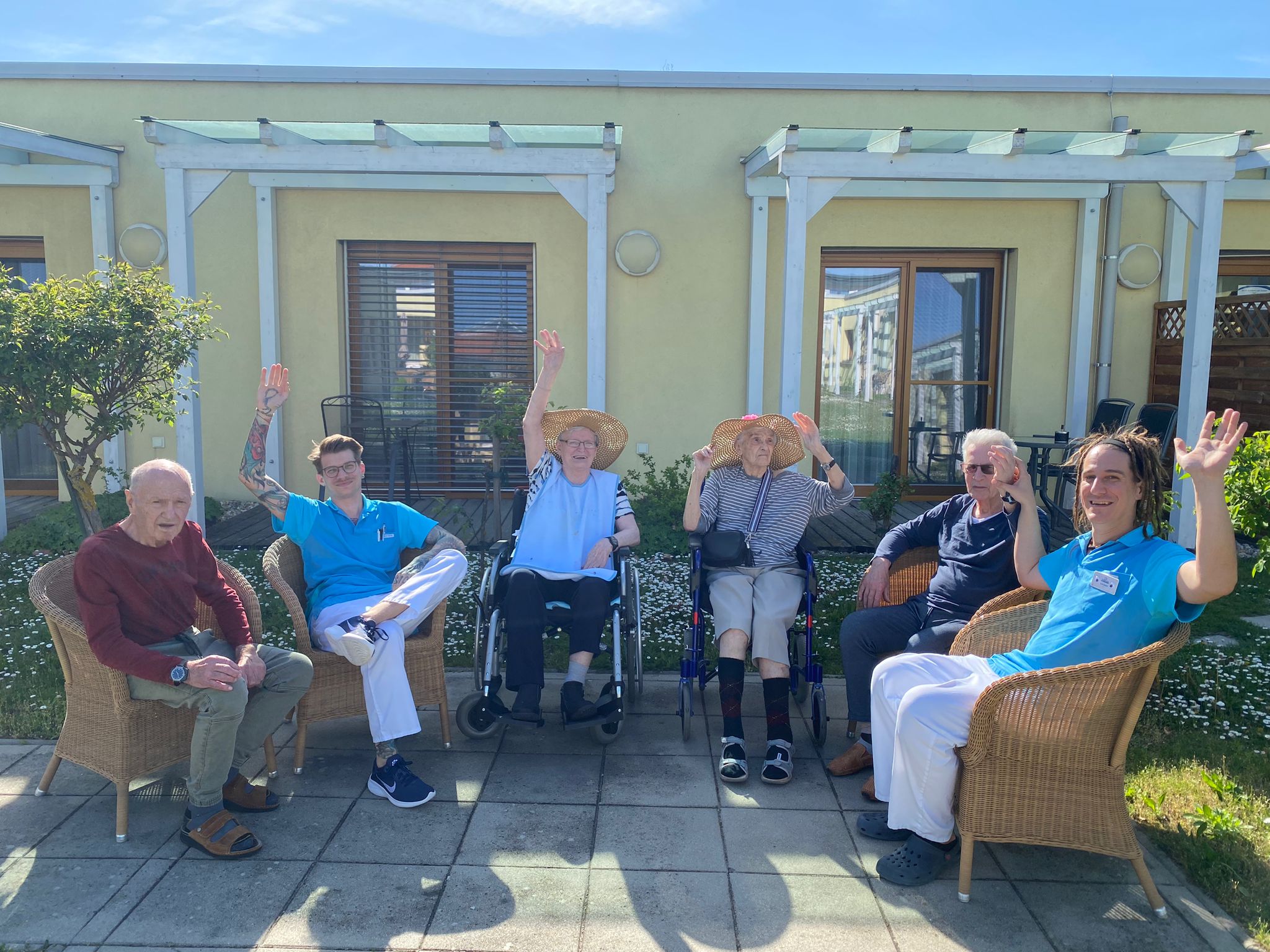 Letztens wurden die ersten Sonnenstrahlen im SeneCura Sozialzentrum Rust willkommen geheißen. Einige Bewohner:innen machten sich auf den Weg auf die Terrasse, packten ihre Sonnenhüte aus und genossen die Wärme der Sonnenstrahlen auf der Haut. Die Seniorinnen und Senioren sowie die Mitarbeiter:innen des Hauses sind offensichtlich mehr als bereit für den Sommer und freuen sich auf alle Aktivitäten an der frischen, warmen Luft.