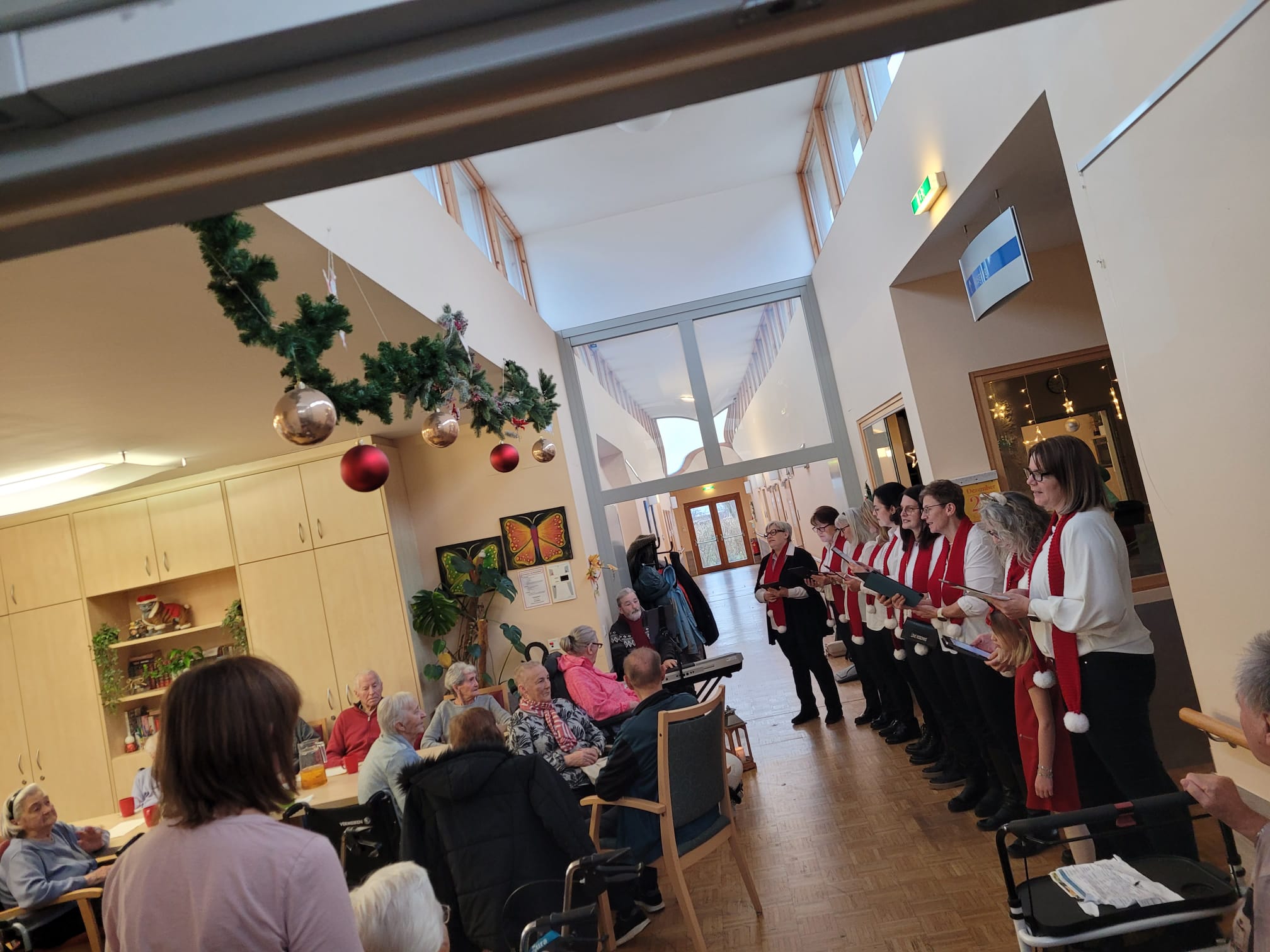 Ein festliches Highlight im SeneCura Sozialzentrum Rust war das Weihnachtskonzert für die Bewohner:innen. Der St. Martins Chor verzauberte die Seniorinnen und Senioren des Hauses mit stimmungsvollen Weihnachtsliedern. Die wunderschönen Stimmen sorgten für strahlende Augen und die Bewohner:innen belohnten die Darbietung mit einem lauten Applaudieren. Es war ein unvergesslicher Nachmittag in der Adventzeit.