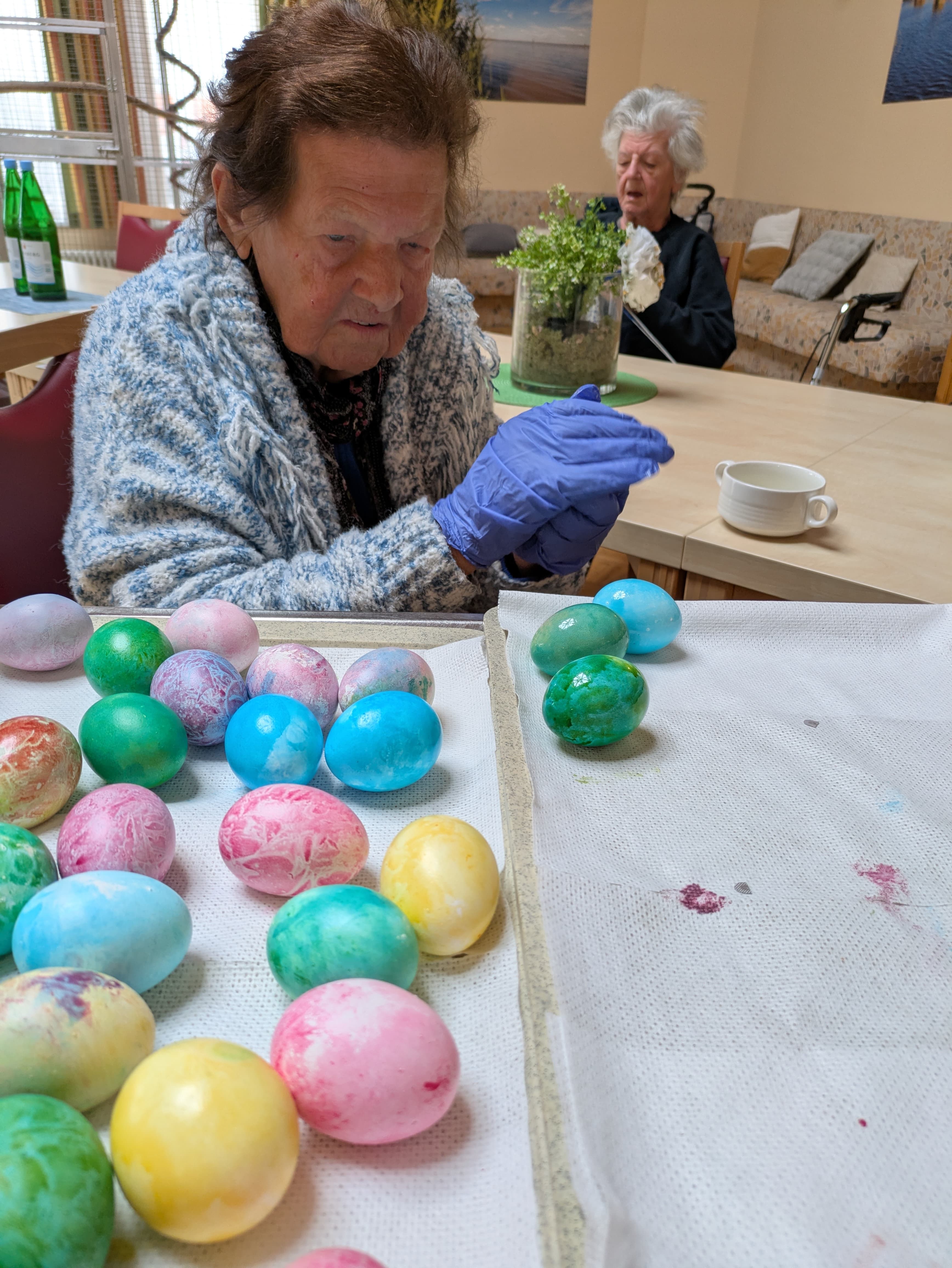 Gemeinsam mit unseren Bewohner:innen wurden im SeneCura Sozialzentrum Rust bunte Ostereier gefärbt. Mit viel Freude und Kreativität entstanden farbenfrohe Kunstwerke. Die Bewohner:innen hatten großen Spaß dabei und genossen die gemeinsame Zeit. Eine schöne Aktivität, die die Vorfreude auf das Osterfest noch verstärkt hat.